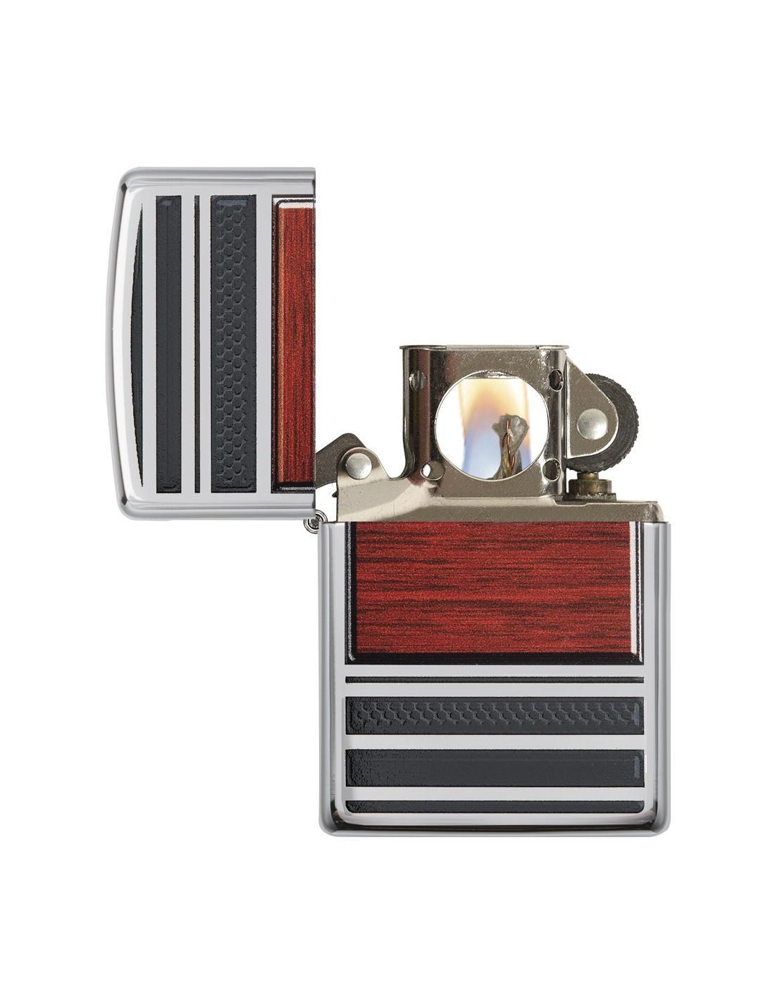 Zapalniczka Zippo 28676 Steel And Wood Pipe to produkt wyprodukowany w USA przez słynną firmę Zippo Manufacturing Company w Bradford w Pensylwanii. Zapalniczki Zippo stały się szczególnie popularne w czasie II wojny światowej, kiedy były produkowane wyłącznie dla armii USA, a dziś zapalniczka Zippo jest częścią standardowego wyposażenia amerykańskiego żołnierza. W latach 60. fani na koncertach zaczęli podnosić i zapalać zapalniczki Zippo, aby witać artystów na scenie, gest zwany „momentem Zippo”. Zapalniczki Zippo są wielokrotnego napełniania, trwałe i lekkie nawet w niesprzyjających warunkach wietrznych. Dziś zapalniczki Zippo są sprzedawane w ponad 100 krajach i stały się przedmiotami kolekcjonerskimi dla wielu entuzjastycznych kolekcjonerów.