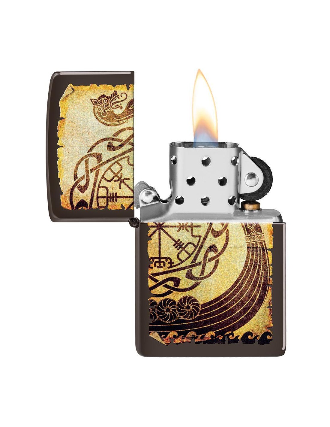Zapalniczka Zippo 49182 Viking Warship Design to produkt wyprodukowany w USA przez słynną firmę Zippo Manufacturing Company w Bradford w Pensylwanii. Zapalniczki Zippo stały się szczególnie popularne w czasie II wojny światowej, kiedy były produkowane wyłącznie dla armii USA, a dziś zapalniczka Zippo jest częścią standardowego wyposażenia amerykańskiego żołnierza. W latach 60. fani na koncertach zaczęli podnosić i zapalać zapalniczki Zippo, aby witać artystów na scenie, gest zwany „momentem Zippo”. Zapalniczki Zippo są wielokrotnego napełniania, trwałe i lekkie nawet w niesprzyjających warunkach wietrznych. Dziś zapalniczki Zippo są sprzedawane w ponad 100 krajach i stały się przedmiotami kolekcjonerskimi dla wielu entuzjastycznych kolekcjonerów.