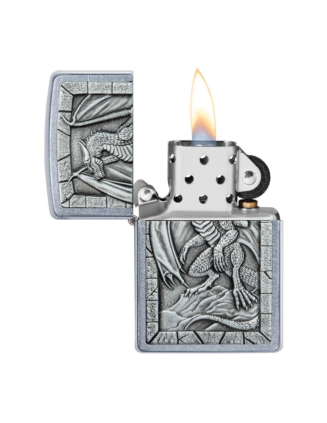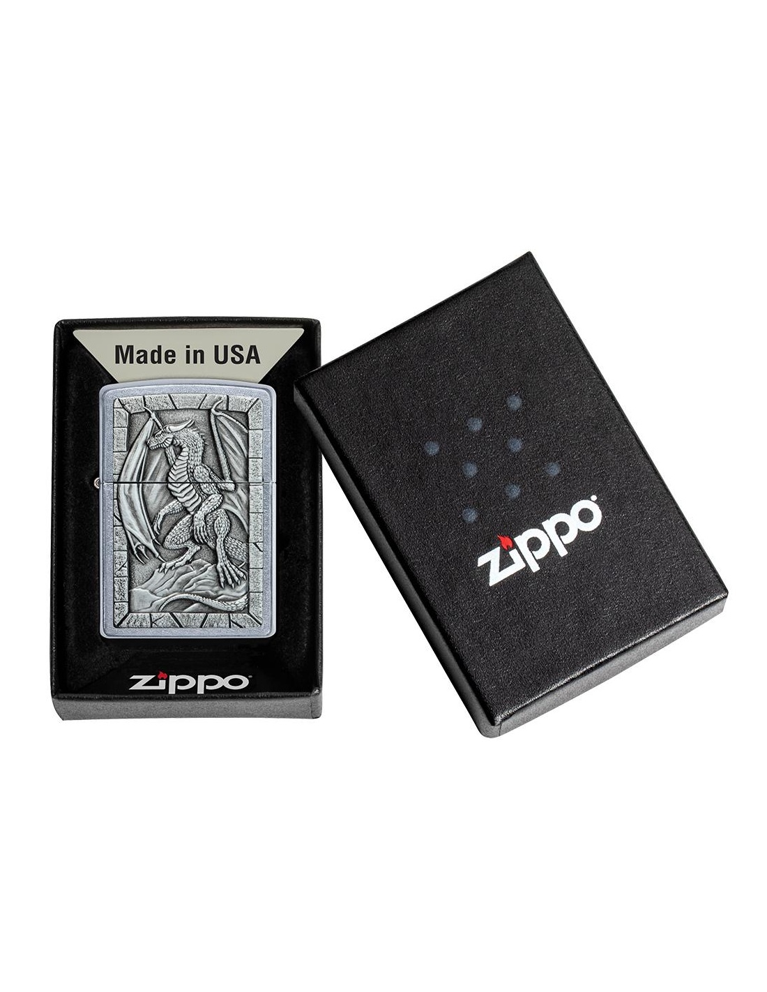 Zapalniczka Zippo 49296 Dragon Emblem to produkt wyprodukowany w USA przez słynną firmę Zippo Manufacturing Company w Bradford w Pensylwanii. Zapalniczki Zippo stały się szczególnie popularne w czasie II wojny światowej, kiedy były produkowane wyłącznie dla armii USA, a dziś zapalniczka Zippo jest częścią standardowego wyposażenia amerykańskiego żołnierza. W latach 60. fani na koncertach zaczęli podnosić i zapalać zapalniczki Zippo, aby witać artystów na scenie, gest zwany „momentem Zippo”. Zapalniczki Zippo są wielokrotnego napełniania, trwałe i lekkie nawet w niesprzyjających warunkach wietrznych. Dziś zapalniczki Zippo są sprzedawane w ponad 100 krajach i stały się przedmiotami kolekcjonerskimi dla wielu entuzjastycznych kolekcjonerów.